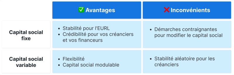 Le montant du capital social d'une EURL peut varier au cours de son existence. Nous parlons alors d'EURL à capital social variable.