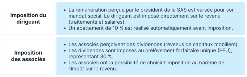 L'imposition du dirigeant de SAS et des associés mérite une analyse détaillée :