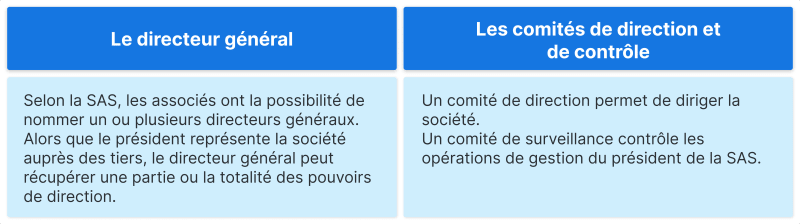 Les statuts d'une SAS exposent les organes de direction pouvant être déployés au sein de l'entreprise :