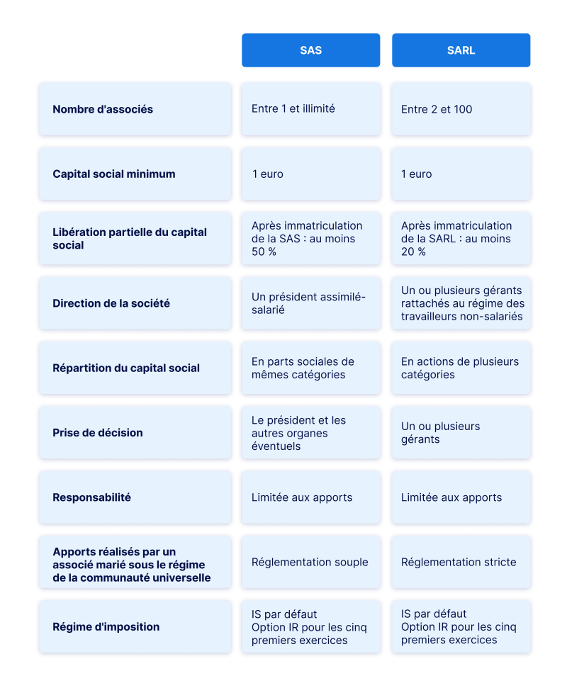 Fiscalement, la SARL et la SAS obéissent aux mêmes exigences, sauf l’exception visant les SARL de famille. Celles-ci permettent, sous certaines conditions, une imposition à l'impôt sur le revenu plutôt qu'à l'impôt sur les sociétés.