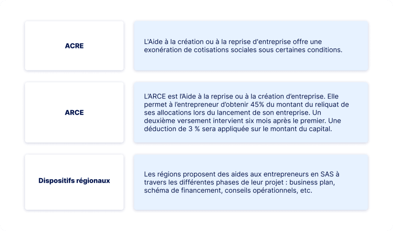 Plusieurs aides d’État sont proposées aux créateurs de SAS :